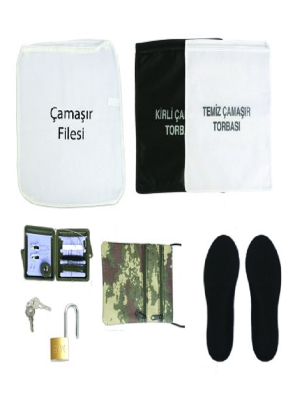 <div> <span style="color:rgb( 0 , 0 , 0 );font-style:normal;font-weight:400;letter-spacing:normal;text-align:left;text-indent:0px;text-transform:none;word-spacing:0px;white-space:normal;background-color:rgb( 240 , 241 , 242 );display:!important"> <span style="font-family:'montserrat' , sans-serif"> <span style="font-size:18.6667px">Paket içerisinde dikiş seti , bot kilidi , askeri boyun cüzdanı , çift bot tabanlığı ve kirli, temiz file çamaşır torbası bulunmaktadır.</span> </span> </span> <br /></div>