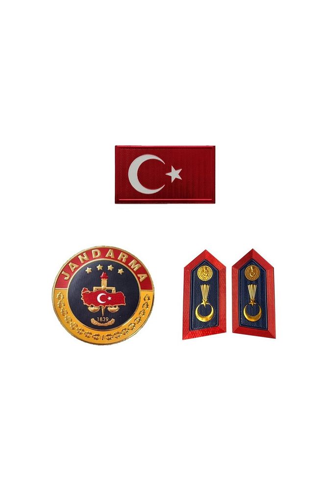 <div> <ul> <li>Jandarma Asayiş Uyumlu Rütbe Aksesuar&nbsp; <br> </li> <li>1 adet Bayrak plastik cırtlı&nbsp; <br> </li> <li>1 Adet spolet Plastik Cırtlı&nbsp; <br> </li> <li>1 Adet Kol arma Cırtlı plastik <br> </li> <li>1 Çift Kol Rütbe Plastik Cırtlı</li> </ul> <div> <br> </div> </div>